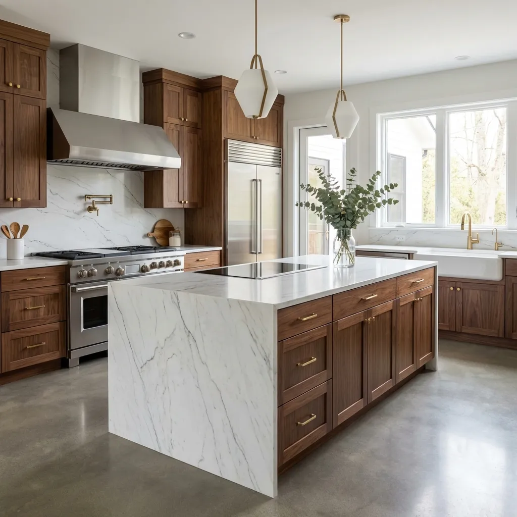 Full kitchen transformation — custom cabinets, quartz countertops, new lighting.